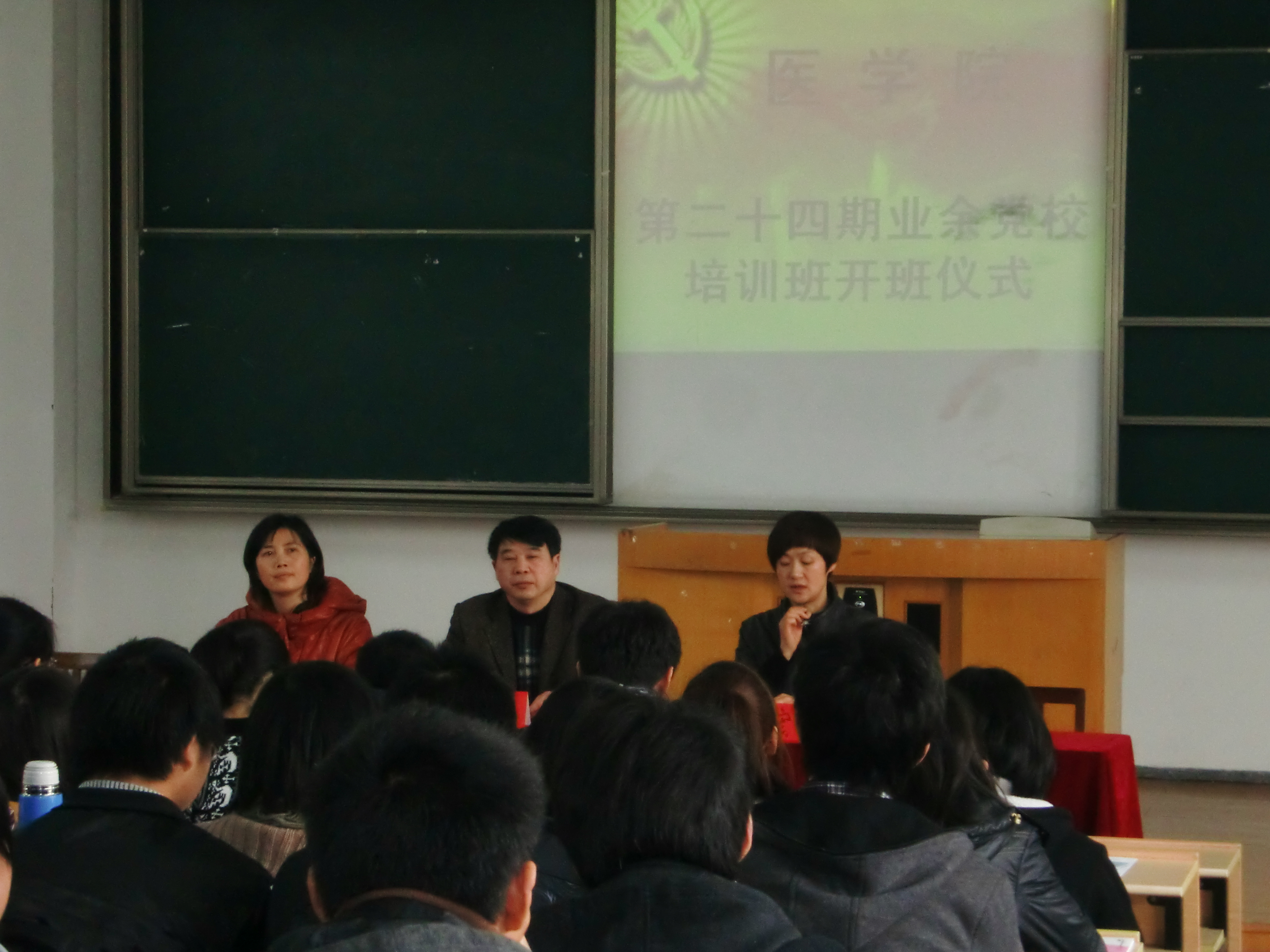 第24期业余党校开班典礼在1号教学楼121教室举行。学院党总支书记、副院长张杰、党总支副书记谢宏、业余党校班主任和143名党校学员参加了本期开班典礼。