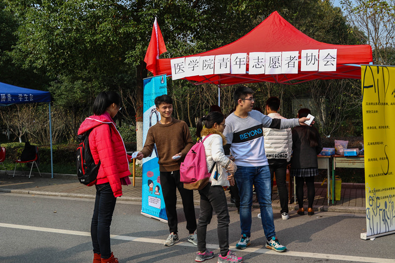 2016年12月1日,嘉兴学院彩票平台 青年志愿者协会在梁林校区老食堂门口和越秀校区笨笨熊广场举办了以“相拥艾人”为主题的防艾活动。