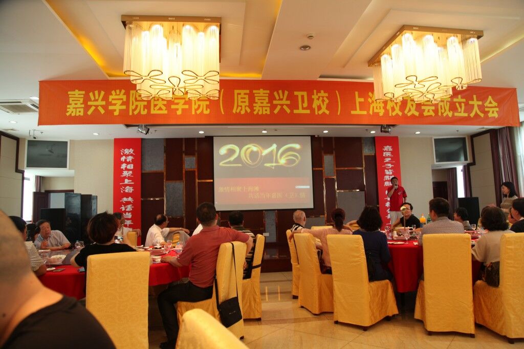 原党委贾书记向与会校友介绍了校友会筹备情况。大会通过了上海校友会章程,通过了校友会组织领导成员,李军艳校友当选会长并作了精彩绝伦的演讲。嘉兴学院党委副书记吕延勤专程赴会并作了情深意切的讲话。嘉兴学院上海校友总会副会长俞汉平、杭州校友会名誉会长孟卫民发表了热情洋溢的贺词。嘉兴卫校76届校友的红歌联唱《我的祖国》、《年轻的朋友来相会》、《弹起我心爱的土琵琶》、《洪湖水浪打浪》等独唱合唱,指挥潇洒,热情奔放,把庆典推向高潮。徐言平老师声情并茂的诗朗诵,仿佛又回到了激情难忘的年代,使众人回味无穷。