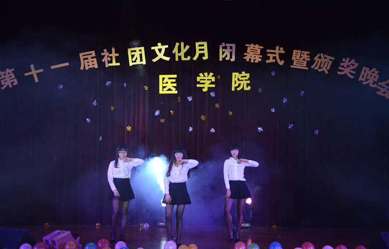 随着表彰大会的结束,社团文化月闭幕式在激情的健美操表演中拉开了序幕,紧接着,诗朗诵《青春是什么》、走秀《古韵》、吉他弹唱《Back To December》、国标独舞《只差一步》、歌舞串烧等节目,纷纷展现了社团的文化精髓,小朋友们的《小苹果》表演更是将整场晚会带向了高潮,现场可谓热闹非凡。荧光爱心社的小品表演《献爱心》,幽默风趣的语言和表演逗笑了在场所有的观众,也让大家在欢笑中思考爱心的意义,手语表演《和你一样》,婉转动人,深深的感染了在场的各位。