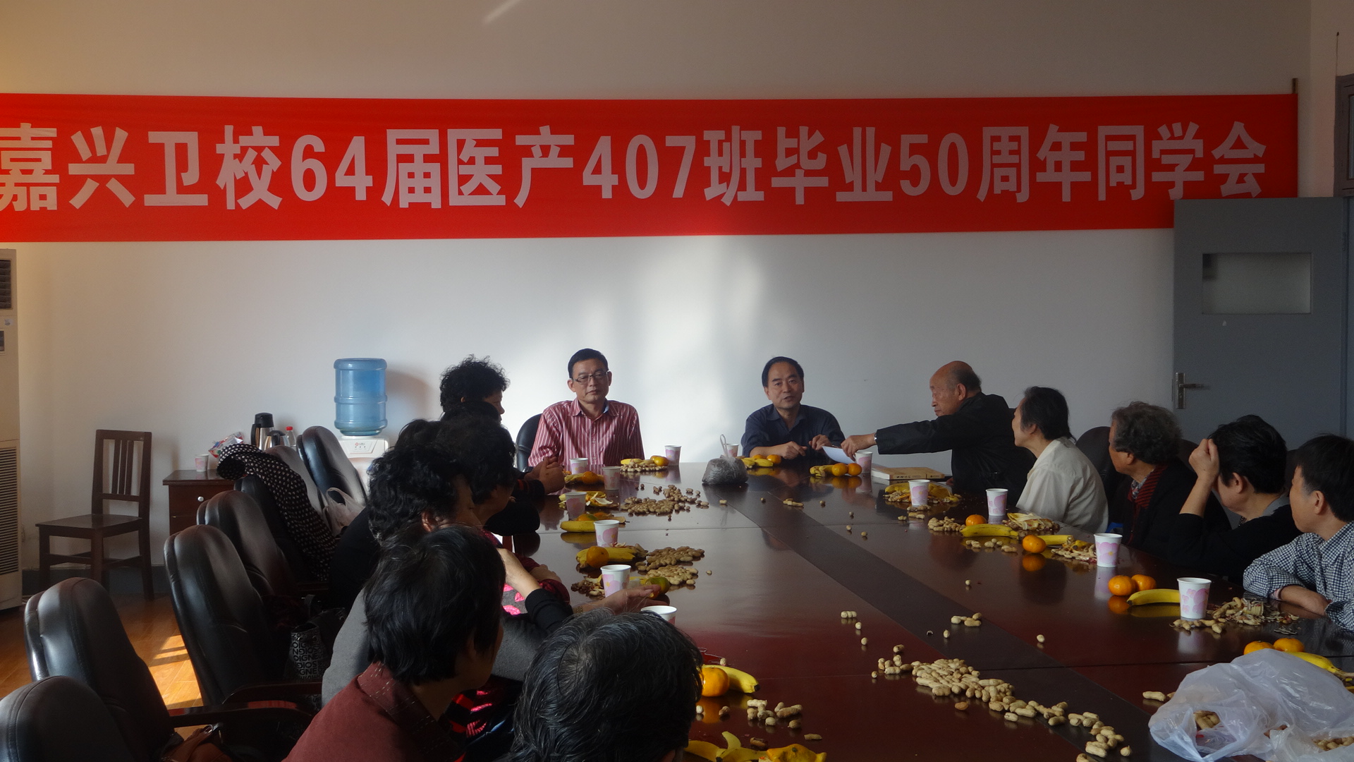 人生浮沉几十载,同学情义始最珍。2014年10月21日下午1:30,嘉兴学院彩票平台 (原嘉兴卫校)64届医产407班在1号楼330会议室举行。彩票平台 院长孟继鸿老师、彩票平台 党委书记惠太望老师出席了本次同学会。