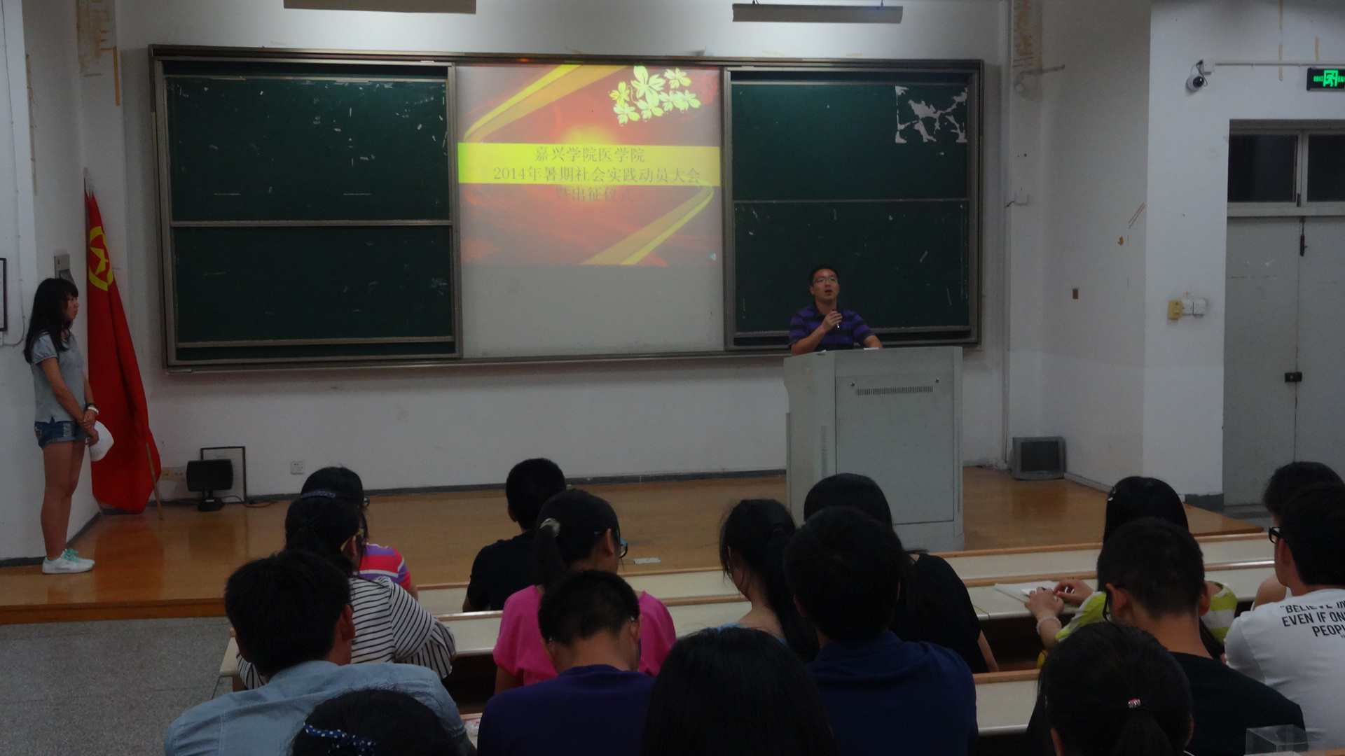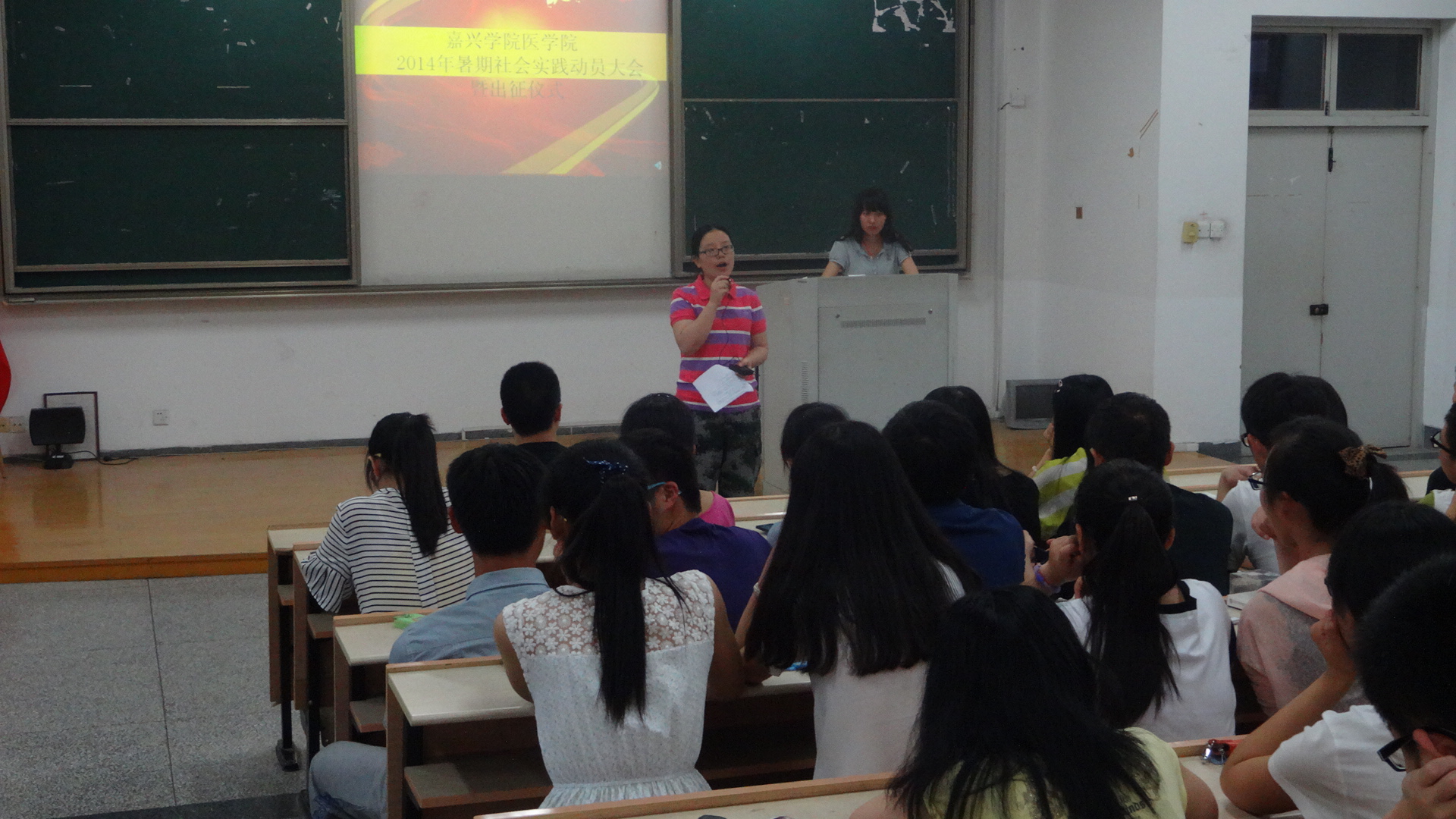 7月3日晚19:00,嘉兴学院彩票平台 2014年暑期社会实践动员大会暨出征仪式在梁林校区1号楼221教室开幕。彩票平台 党委副书记黄金珠老师,团委书记赵丽萍老师出席,暑期社会实践团队全体队员参加本次大会。