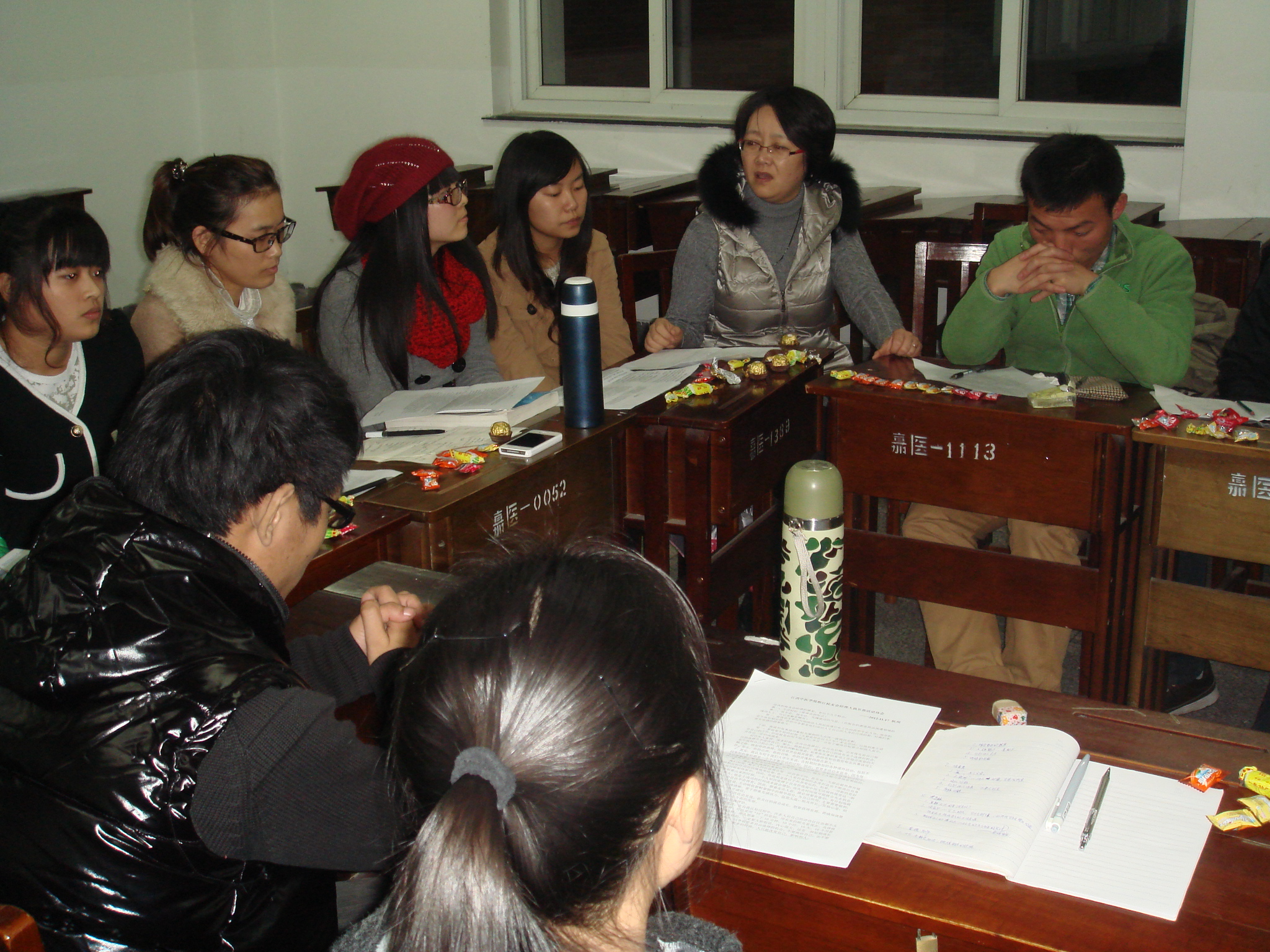 图7 黄嬛副院长听取同学们的心得体会 图8 同学们在讨论会上积极发言