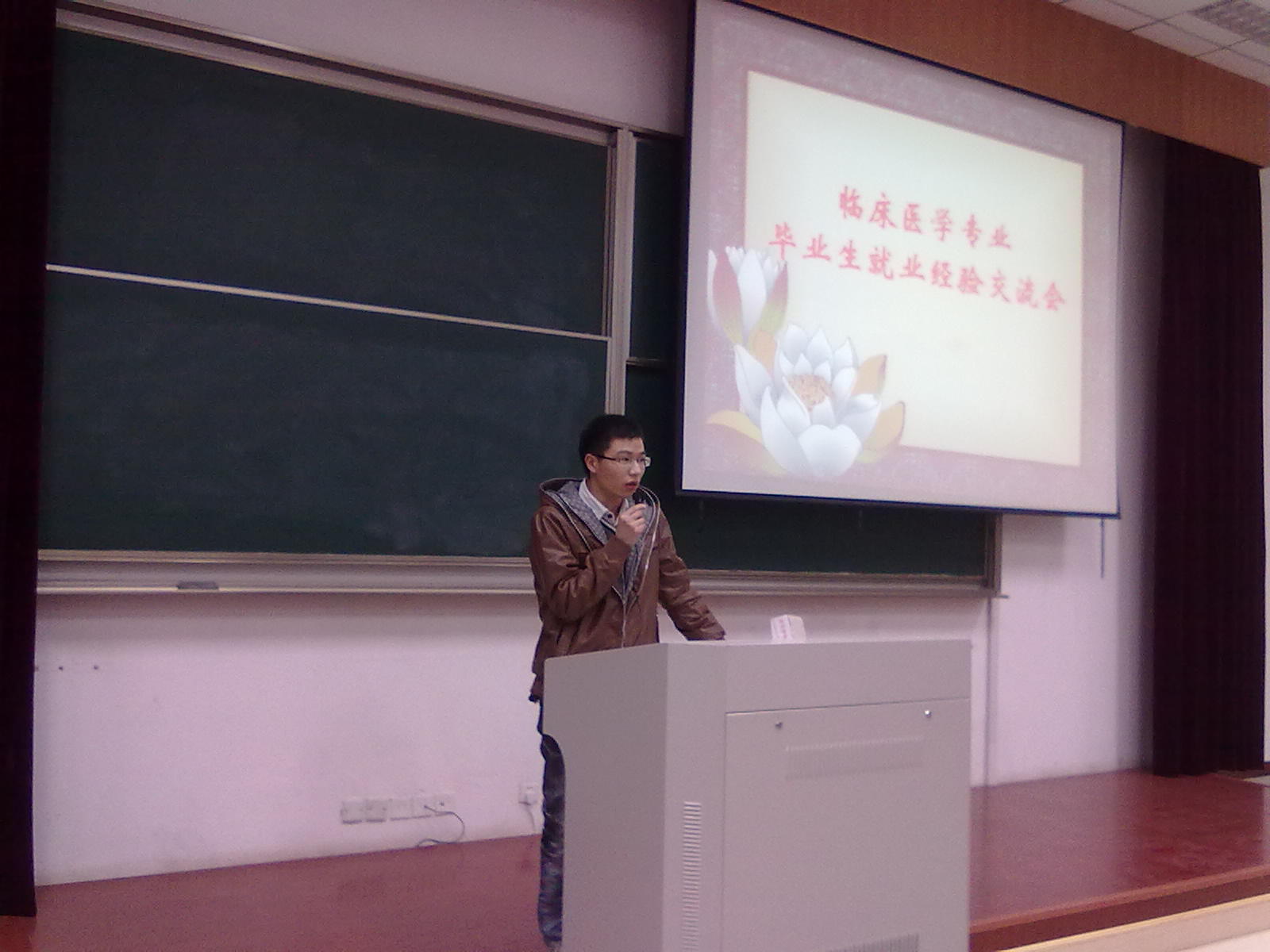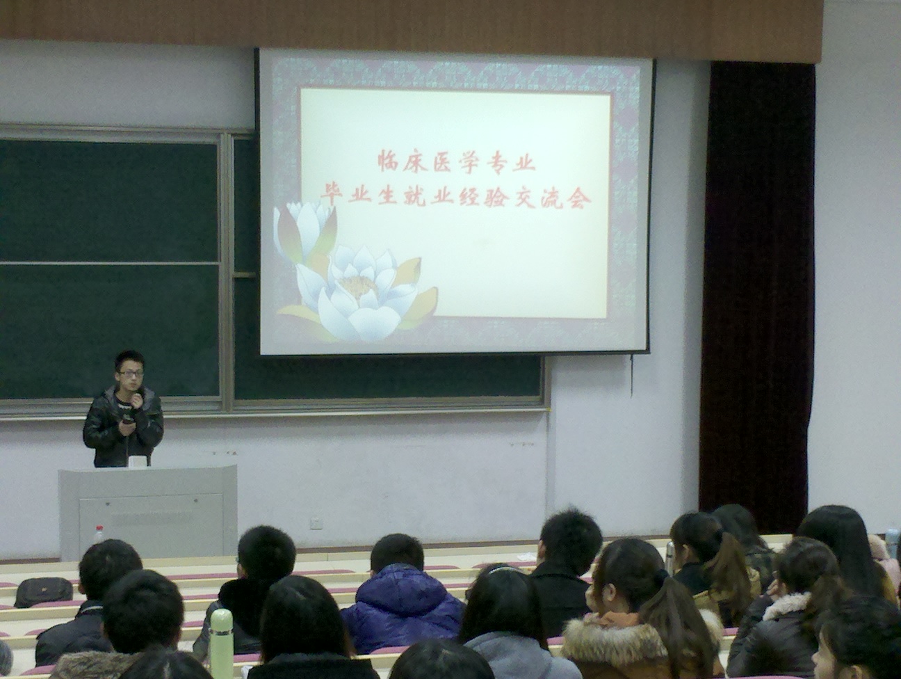 为了让08级临床医学专业同学更好地了解当前毕业生的就业情况,提前做好考研、就业准备,在彩票平台 领导的重视下,学工办于3月22日晚在13号楼报告厅举行了08级临床医学专业毕业生就业经验交流会。会议由彩票平台 学工办主任蒋小红主持,副书记谢宏、就业辅导员彭溶及全体08级临床医学专业同学参加了此次会议。 我院特意邀请07级临床医学专业陈幸、陈马云、周阳、张超男4位在考研、就业过程中取得优异成绩的毕业生代表与08级的学弟学妹们共同分享自己的宝贵经验。在交流会上,各位毕业生都坦言相待,将考研复习规划、技巧、复试注意事项、就业心理调试、备考技巧等宝贵经验倾囊相授,他们的奋斗经历都深深感染着在座的每一位同学。 最后,持续了两个多小时的大会在热烈的掌声中结束,大家仍然觉得意犹未尽,在会后还分别找到校友进行个别交谈,并表示此次交流会受益匪浅。