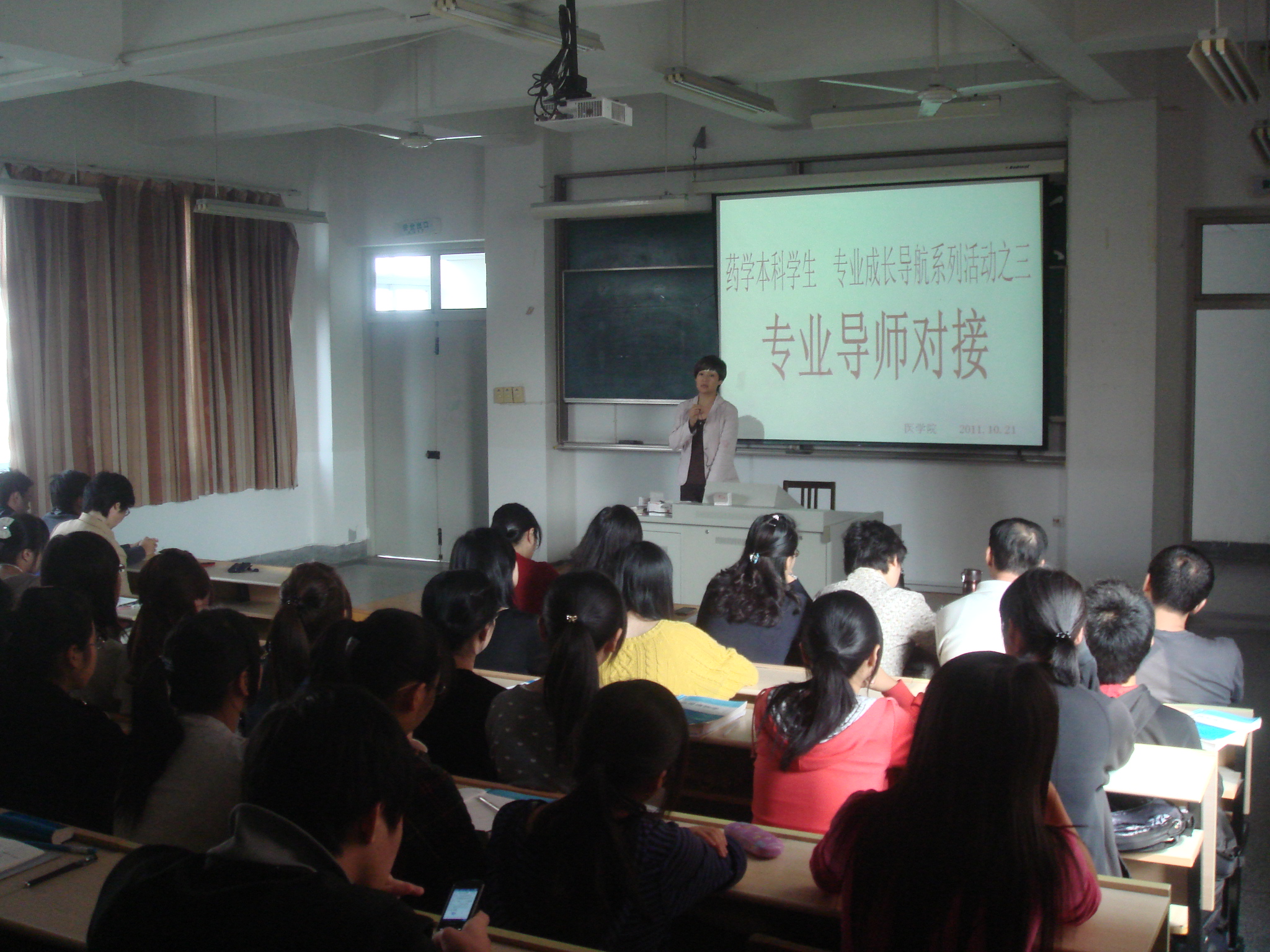 党总支副书记谢宏老师主持,2010级药物研究所的11名专业导师及药学专业全体学生出席了本次会议。