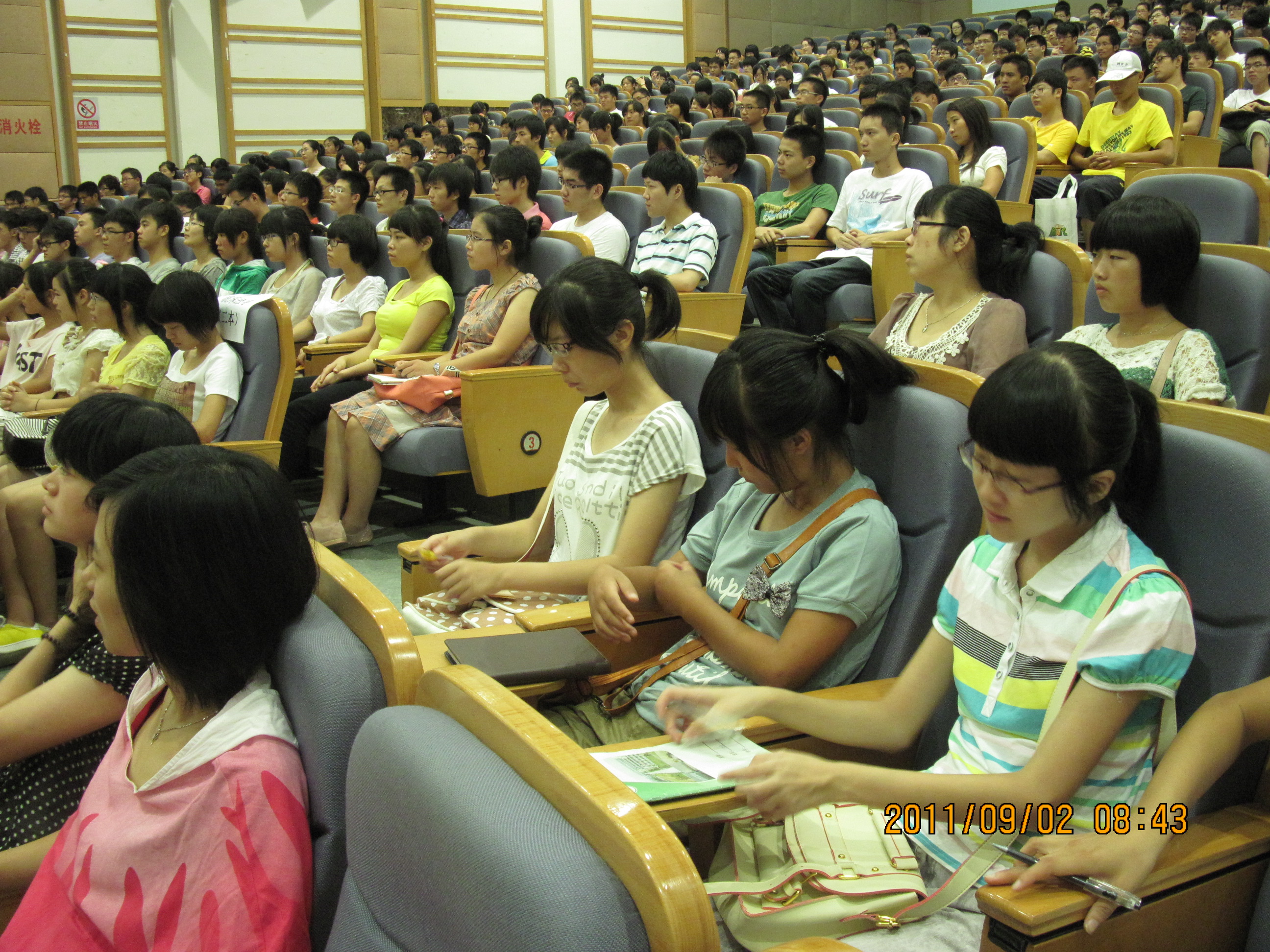 在TCL报告厅召开2011级新生大会,来自全国各地近400位2011级新生参加大会,大会由彩票平台