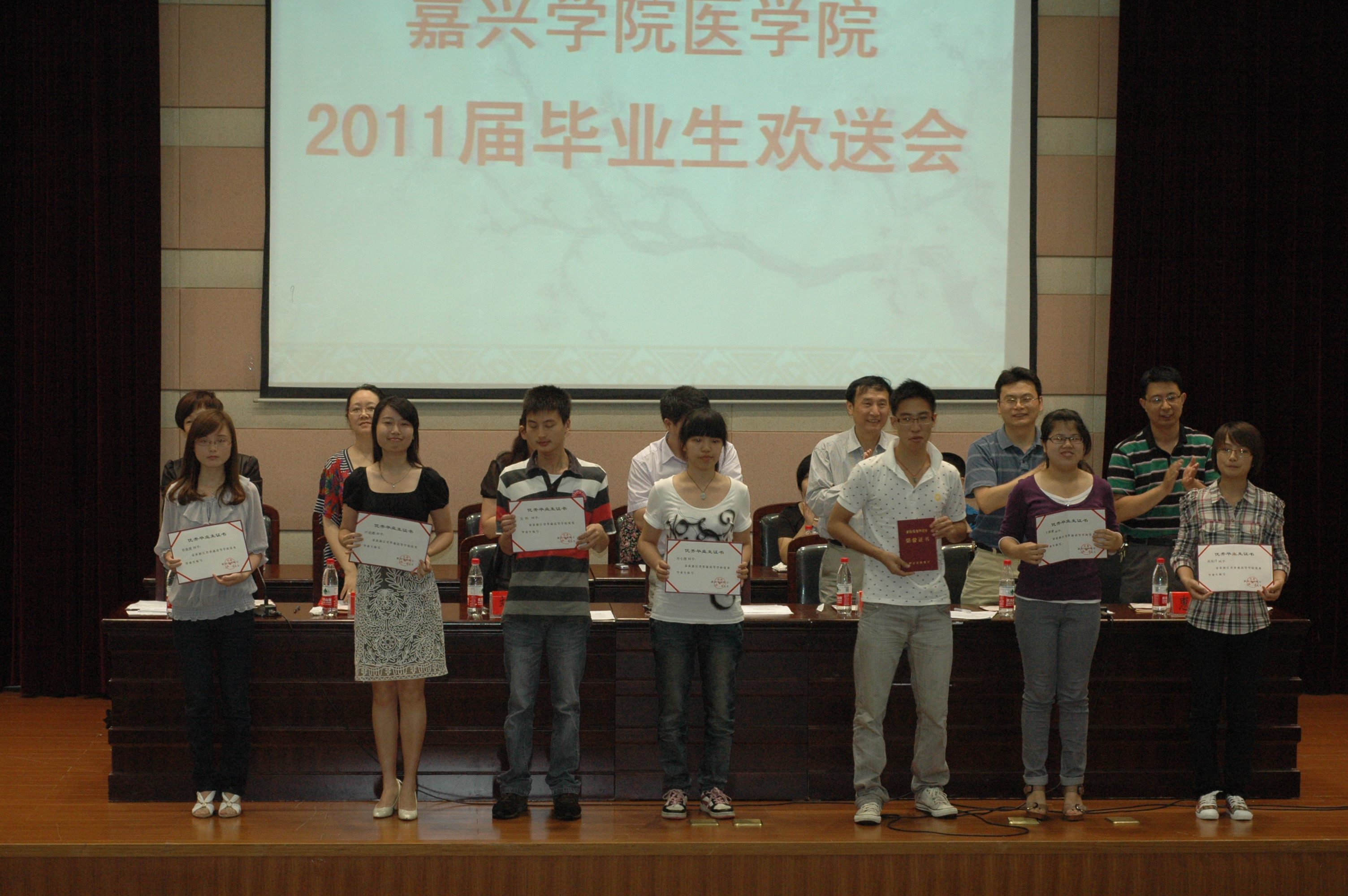 欢送会上,学院通报了“陈省身奖”获奖名单,同时表彰(省级、校级和院级)优秀毕业生、优秀实习生、2011年浙江省大学生医学竞赛获奖学生、考取研究生和公务员学生、就业先进班集体。毕业生向学院赠送了纪念品。