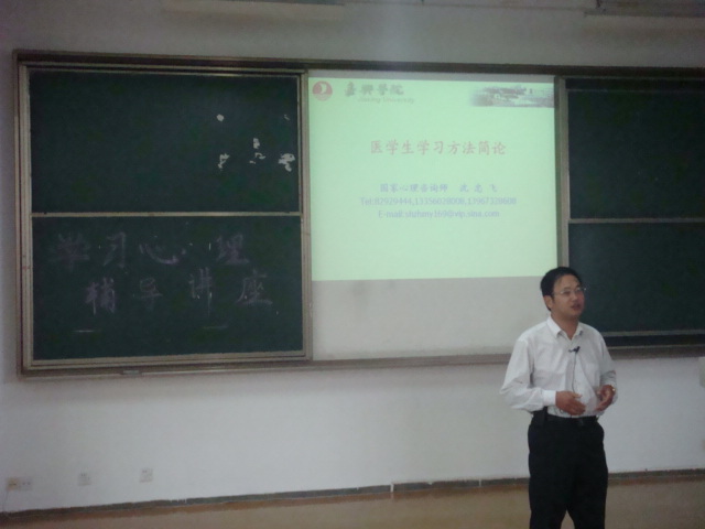 2009年11月1日上午8点半,彩票平台 学工办邀请到“解剖学教研室”的沈忠飞老师(国家二级心理咨询师),为2009级护理专业共约100人做了一场有关“学习心理”的辅导讲座。