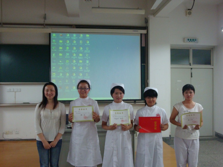最后,经过激烈的角逐,大赛决出了前三名,分别由护本081的班邵雨萍、护本074班的林盼盼、护本081班的杨曼曼获得,护本083班的施能萍获得了“Angel”称号。