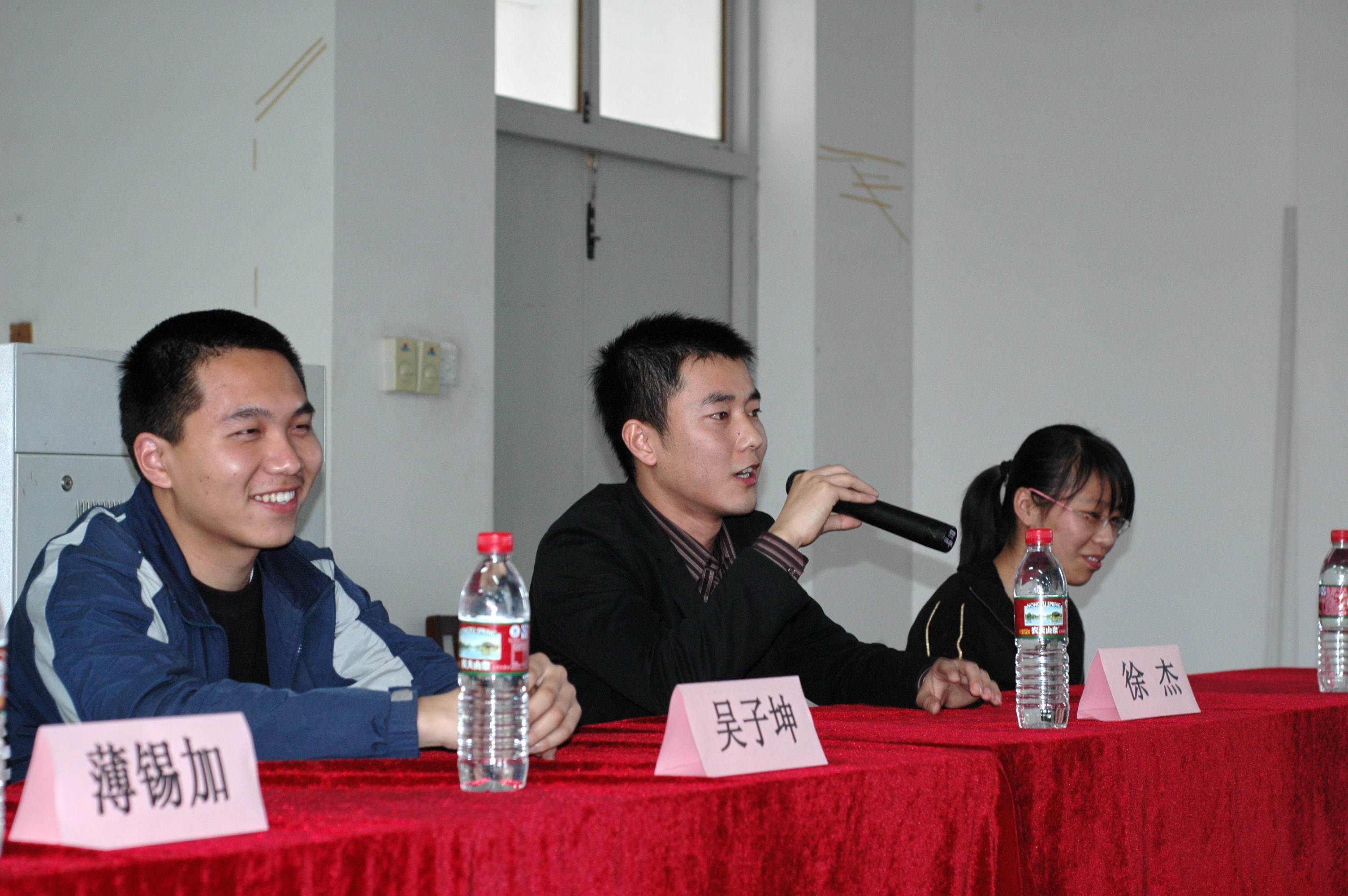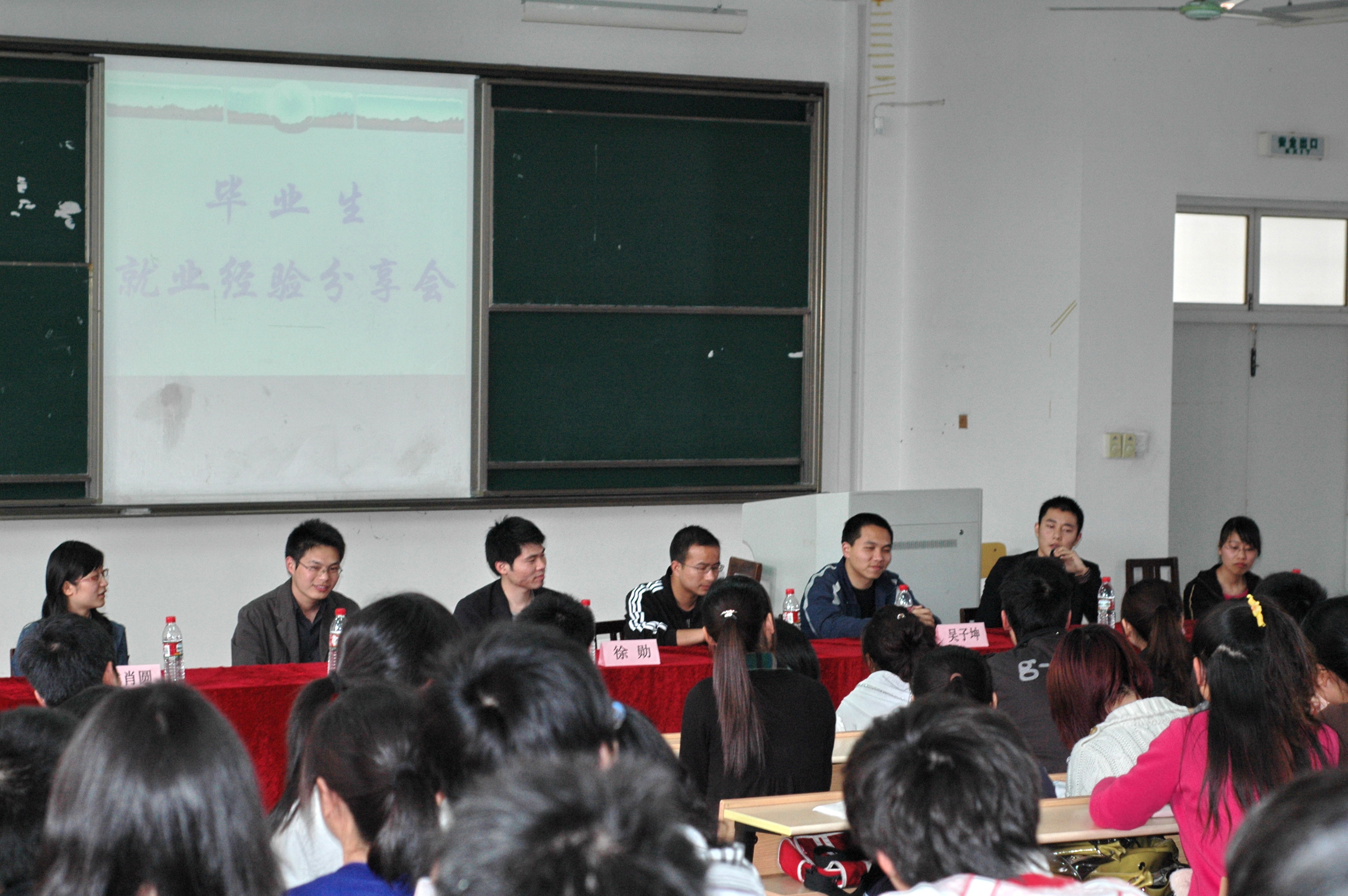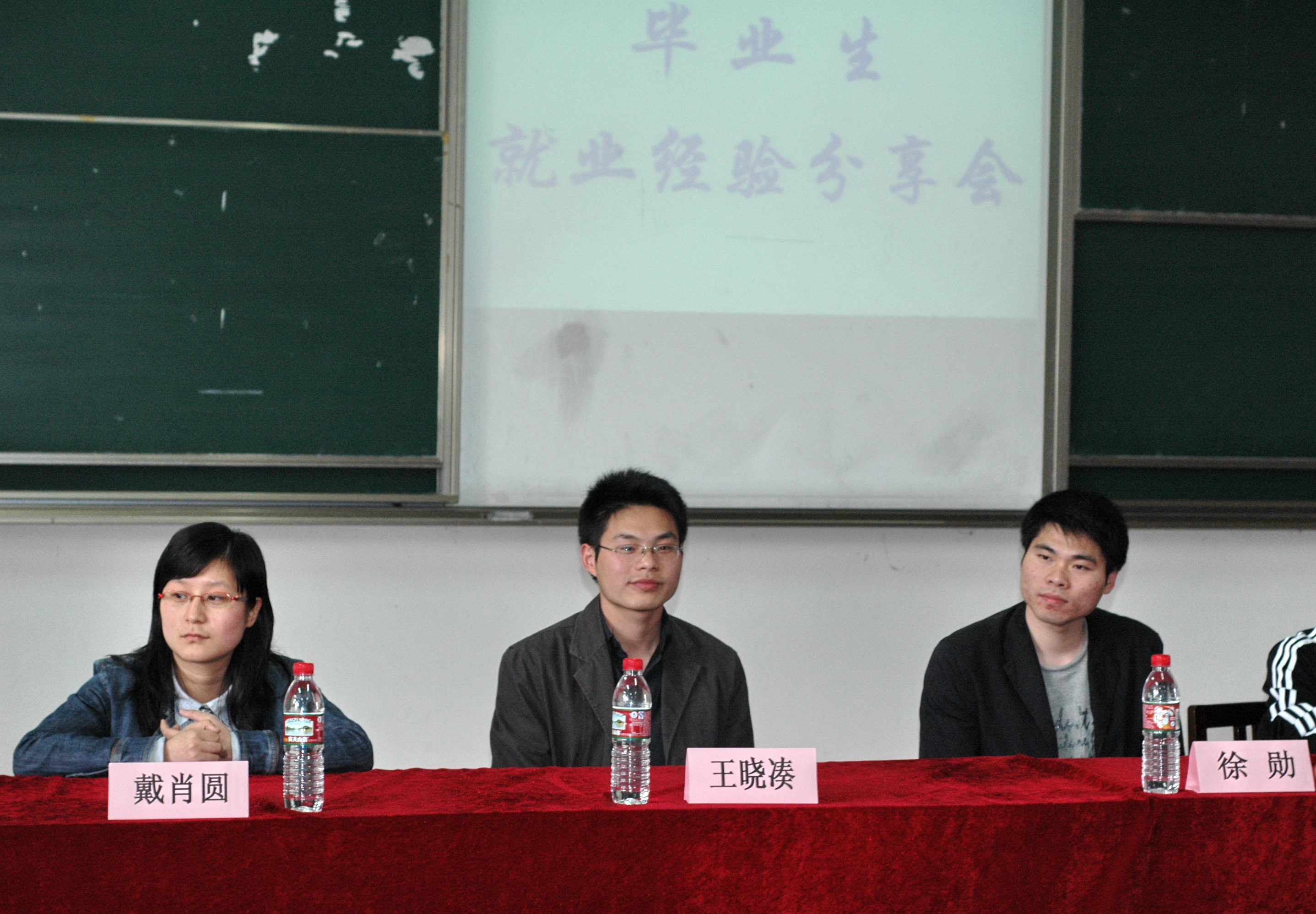 学工办特意邀请我院已经毕业的校友和正在实习中的毕业生,于4月11日下午来校做了一场“毕业生就业经验分享会”,与05级的学弟学妹们共同分享了自己在考研、考公务员、找工作当中的宝贵经验。此次活动邀请到的校友有:薄锡加、徐杰、吴子坤、徐勋、王月平、王晓凑、戴肖圆,由彩票平台