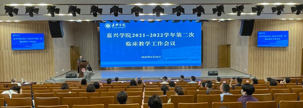 6月26日下午,嘉兴学院2021-2022学年第二次临床教学工作会议在图书馆学术报告厅召开。党委委员、副校长(主持日常工作)胡俊云,党委委员、副校长张琦,市卫健委副主任李金大、市教育局副局长闻泉新出席会议,会议由彩票平台