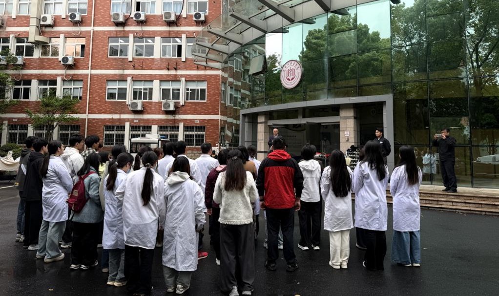 于2026年4月23日中午在医学实验中心(仁术楼)门口广场,成功举办了2026年春季消防安全培训演练。学院共50多名教师、学生参加了本次演练。演练特邀校保卫处丁伟老师、田野老师进行现场专业讲解与操作指导。